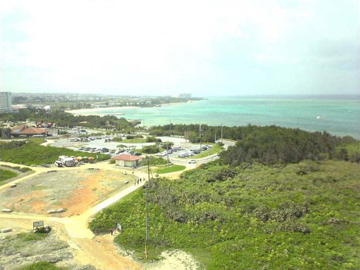 帰りに、宜野湾市のコンベンションセンター横に有る、トロピカルビーチへ寄って、地元民が行くビーチの風景を、ぐるーっと、一周見て歩いていると、沖側に有る、テトラポットの上に、海パン一丁で、真っ赤になるまで、酒を飲んだ、米軍兵達が「サメ出没!危険!」と書かれた海へ、飛び込んでいました。