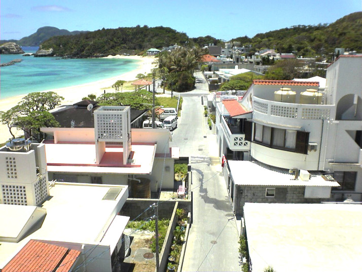 写真は、宿の屋上から、一番奥に有る、ダイビングショップ方面を撮った写真です。