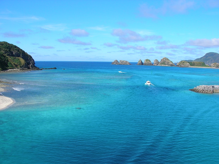 こんな漁港の横なのに、さすが離島だなと、感心する程の海でした。
