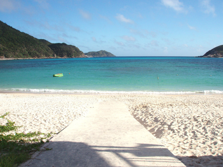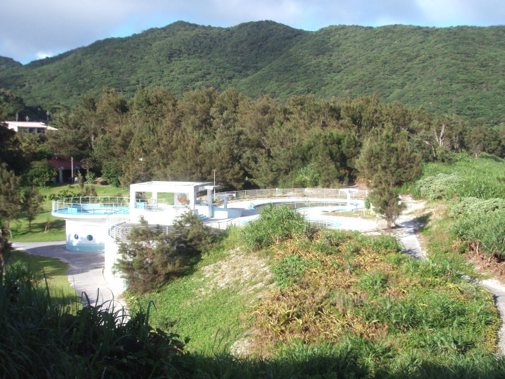 展望台へは島の地図を見ると、いくつか細い小道をぬけると行けるように書いては有るんですが、いざ行って見ると獣道になっていてとても行く気にならなかったので、一番遠そうなキャンプ場をぬけてプールサイドから行く道を選びました。