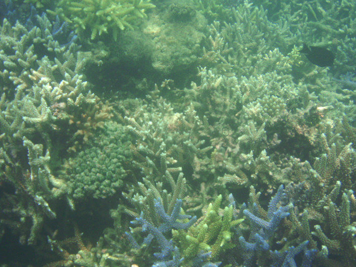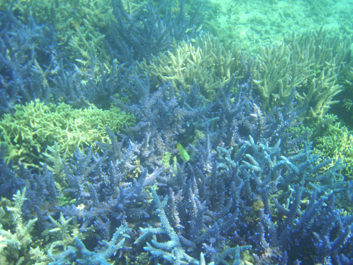 この写真は、水深2m位のところに有った珊瑚を、一応、もぐって写して見たんですけど、潜った度合いが、まったく伝わらないかと思います。