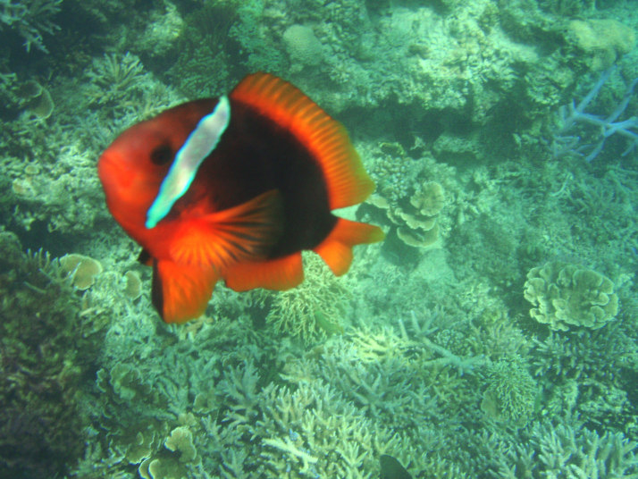 ちなみに写真は、普段は臆病で有名な隠れクマノミ(5cm位)の一種類だと思うんですが、凄く近づいて来たので、こんなに大きく写ってしまいました。