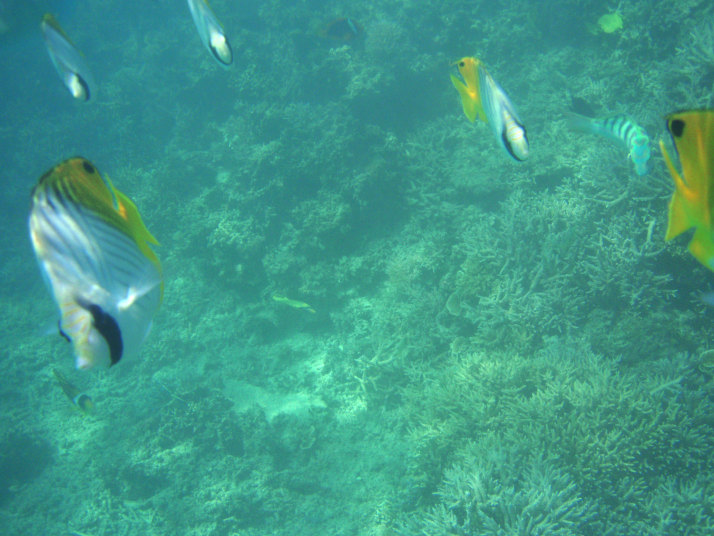 何度海に入っても、カメラのキャップを外すと写真のように魚達が私に向かって来ました。