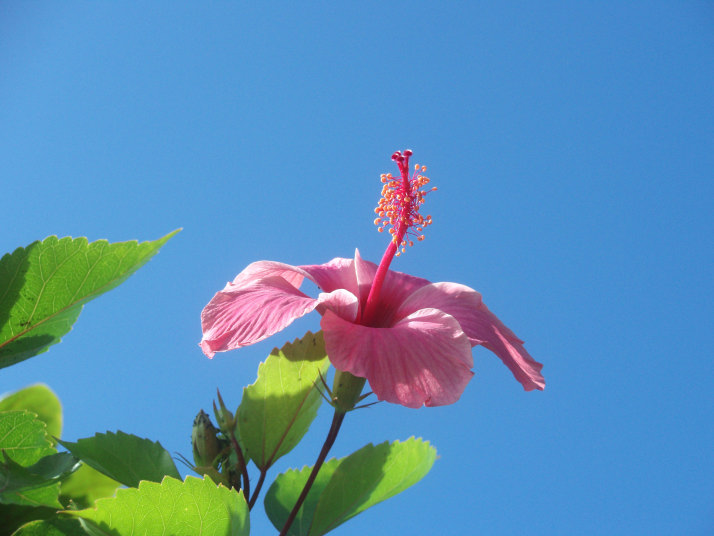 前から、シャッターチャンスを探していた、ハイビスカスと空の写真も撮れました。