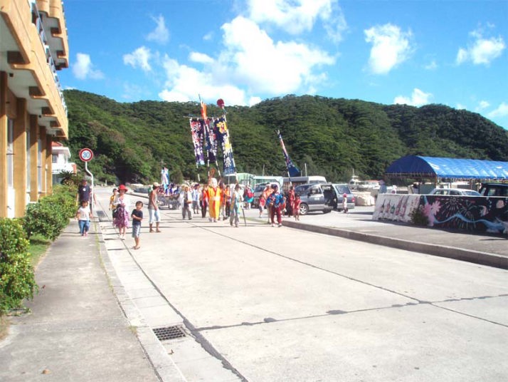 港の近くでは丁度エイサーをやっていました。