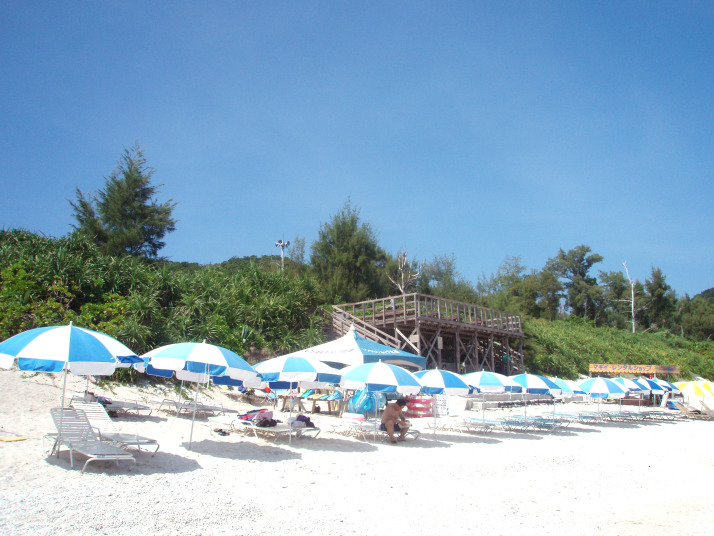 私が「さっきのフェリーに修学旅行の生徒達が乗ってたんで、後で来るんじゃないですか!」と言うと、「修学旅行の生徒達はコースが決まってて、ビーチには来ないんですよ」と寂しそうに話をしていました。