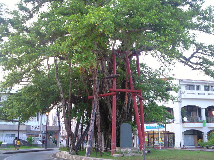 15分くらい歩いた所に、名護の名物「ひんぷんガジュマル」の木がありました。