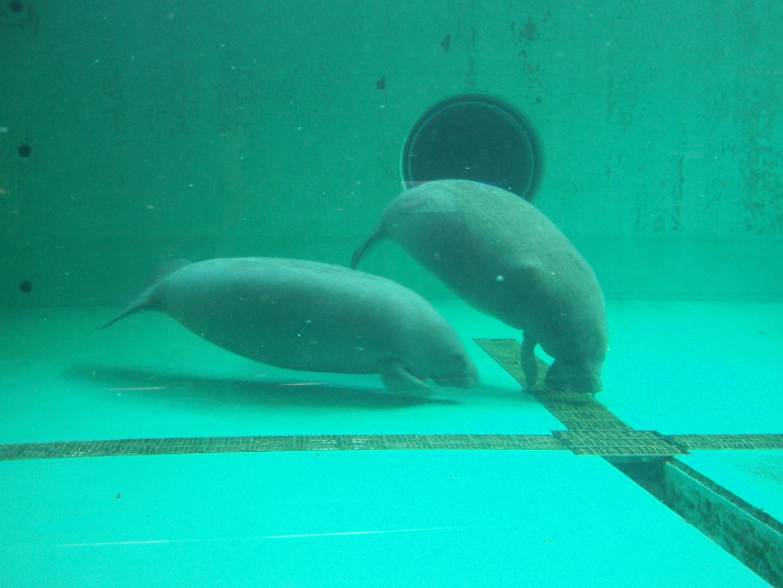 しばらく観察していると、マナティーって、手を交互に動かして底を歩く事が解りました。