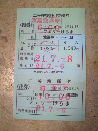 しばらくするとタクシーが来たので、乗って阿波連集落まで帰って行きました。