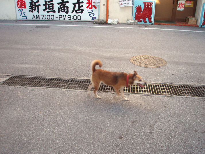 新垣商店前で、ワンちゃんは違う方向に散歩へと向かいお別れしました。