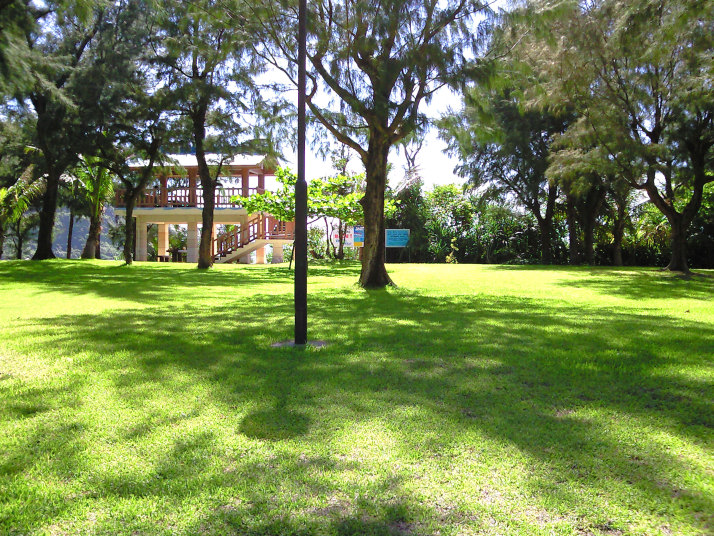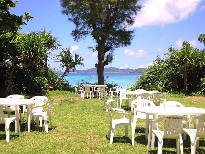 あまりの暑さにテントには入らず、ビーチのすぐ後ろに有る展望台の日陰の席で休んでいました。