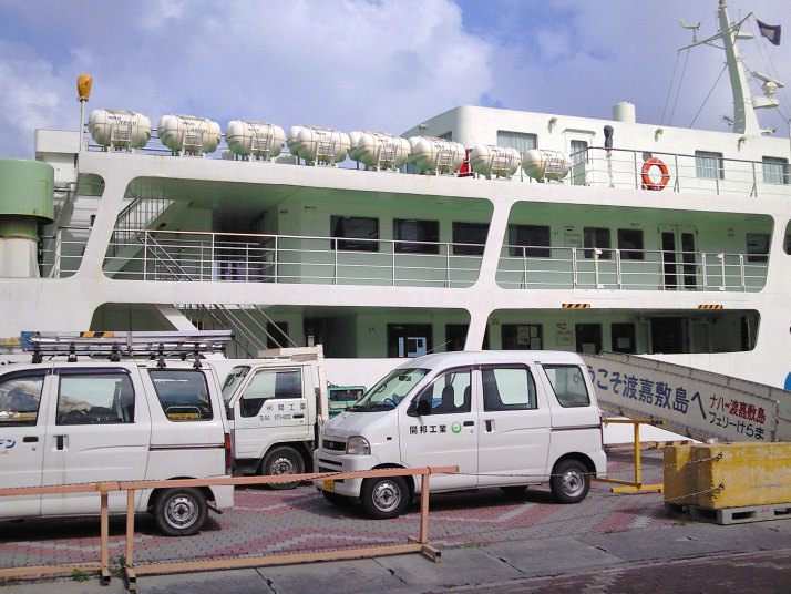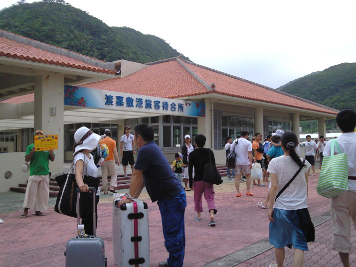 港には、今回お世話になる宿の「けらま荘」のバイトの人が迎えに来て居ました。