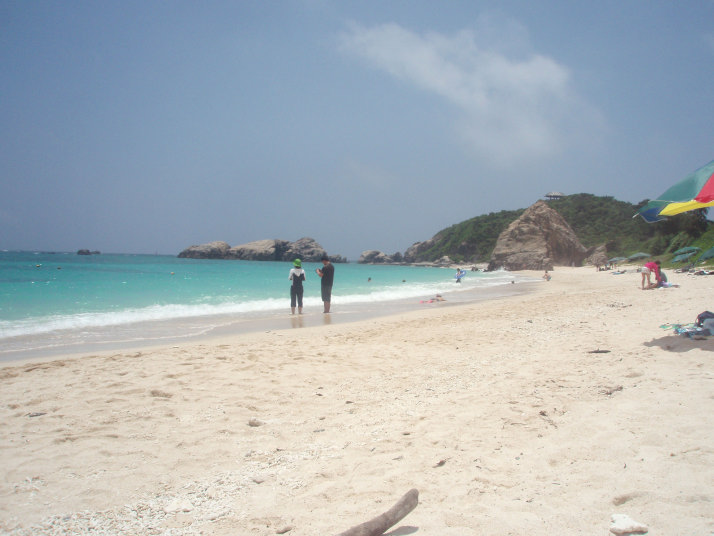 私達の周りには、何組かの観光客カップルや米軍の若い兵士らしき人達が、わいわいと海遊びを楽しんでいました。