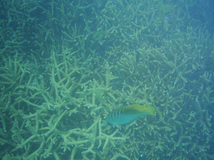 でも何とか珊瑚が、うっすらと見えていたので、2本程泳いでテントで休んでいました。