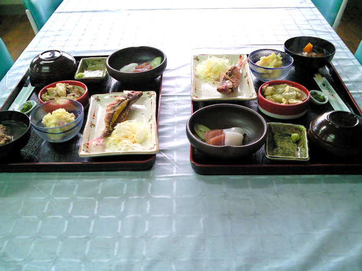 (夕食は今までの宿に比べると、ちょっとおかずが少な目な感じでした。)