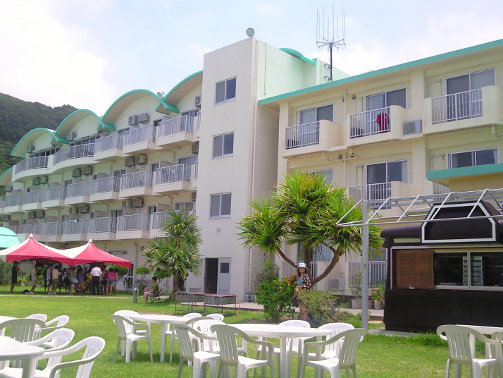 まあ、とにかく浜辺に上がって落ち着くと昼近かったので、ビーチの目の前に有るホテル「とかしくマリンビレッジ」へ昼食をとりに行く事にしました。