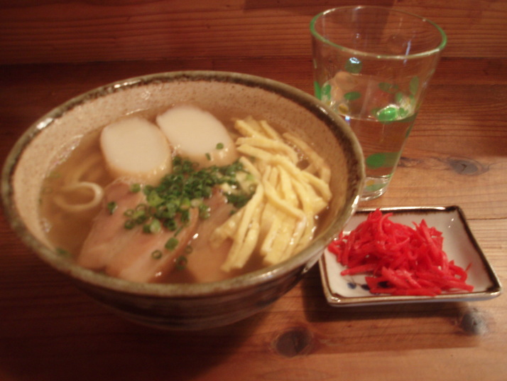 昨日、昼食のカツカレーが大盛りで食べ過ぎた感じがしていたので、今日は2人共沖縄そばにする事にしました。