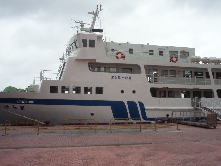 とまりん(泊港)に着いて、乗船券購入後、出航の30分前にフェリーに乗り込んで見ると、船内には誰一人いなかったので、さすがに夏休み前で遊びに行く人は少なそうだな〜っと思っていたら、出航前には満席になっていました。