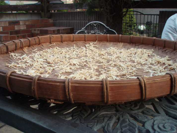(これは、庭のテーブルの上で干されていた大根の写真です。)