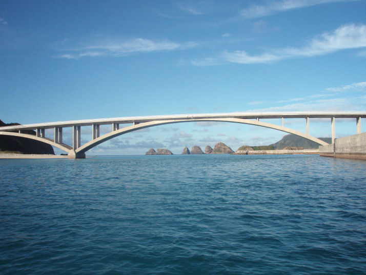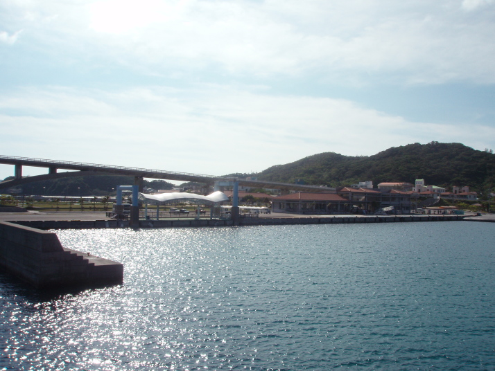 到着後すぐに「スーパー辰登城」でレンタル自転車を借りて、阿嘉大橋の上まで登って来ました。