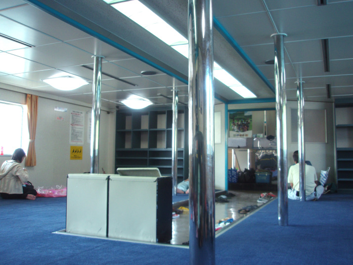 阿嘉島から乗り込んで来た女子高生達が、きれいに市場のまぐろのように一列に並んで寝て居ました。