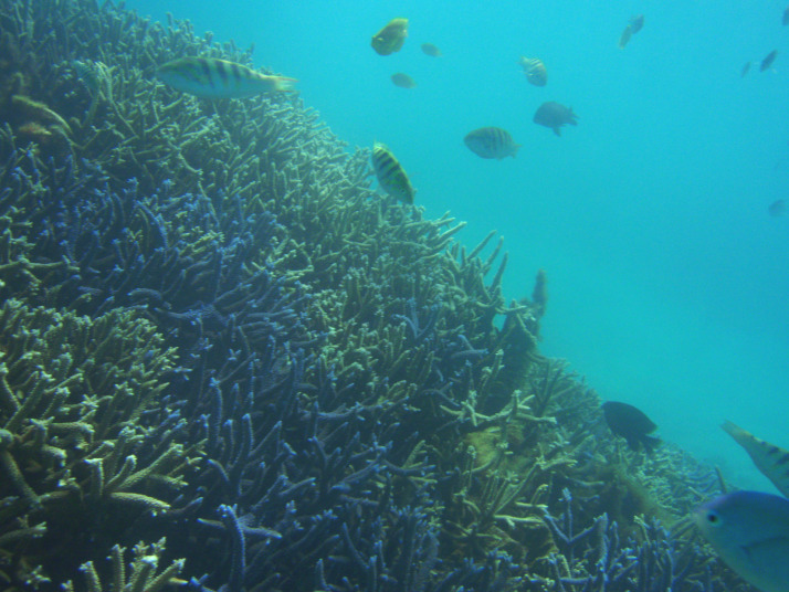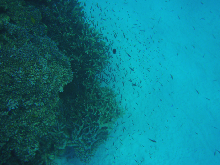 珊瑚自体は、そんなに多く生息していないんですが、魚の数は多くて良い感じでした。