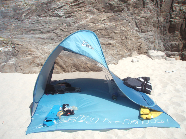 今日は波が弱まっていたんですが、無人島の為風が強く、テントはご覧のとおりでした。