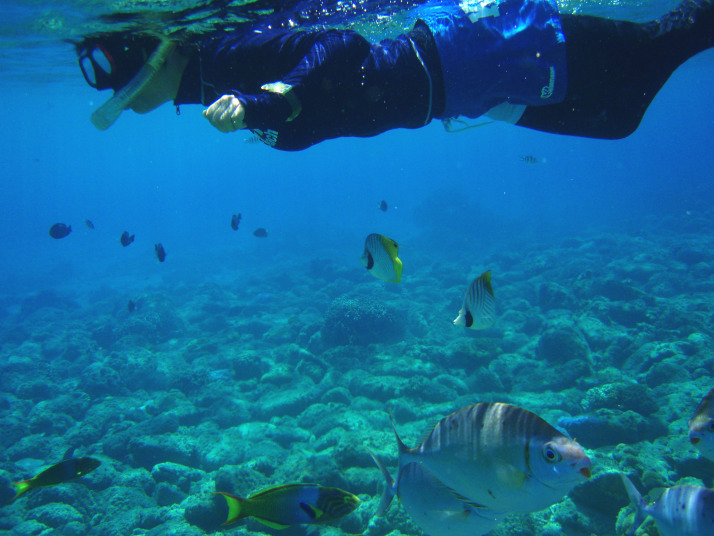 ここは何度か「渡嘉志久ビーチ」から頑張って泳いで来た事はあるので、シュノーケリングポイントだとは知っていたんですが、最近この辺りの沖の方まで泳いで来るのが疲れる為、あえてお金を出してツアーに参加してみました。