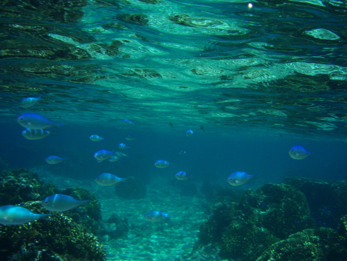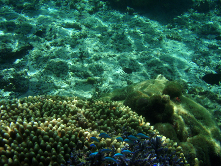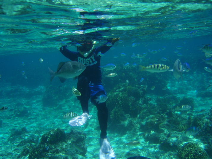 なので、あまり沖に行くと浅くて泳げないので、手前の珊瑚の無い場所を探しながら泳いでいました。