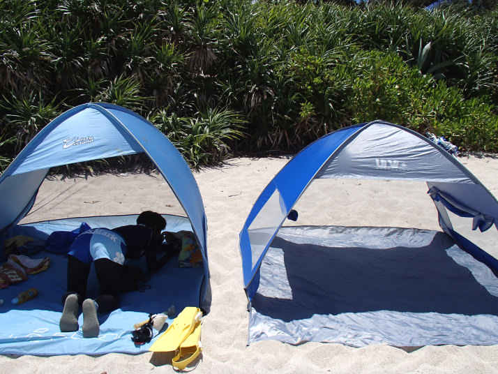 今回は、2家族用にテントを2つ持参して並べて設置しました。
