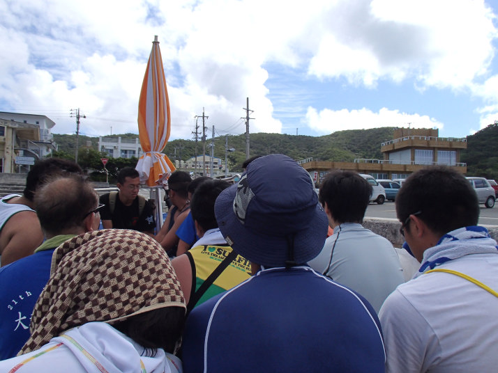 船の乗船開始時間は3時半で港に着いたのが3時15分くらいと、いつもならまだ早いくらいの時間だったんですが、すでに帰りのお客さんが行列になって並んでいました。