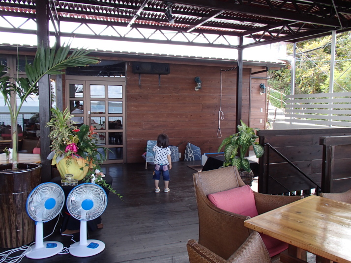 テラス席は丁度海を眺めながら食事などが出来るように設計されており、観光客で一杯でした。