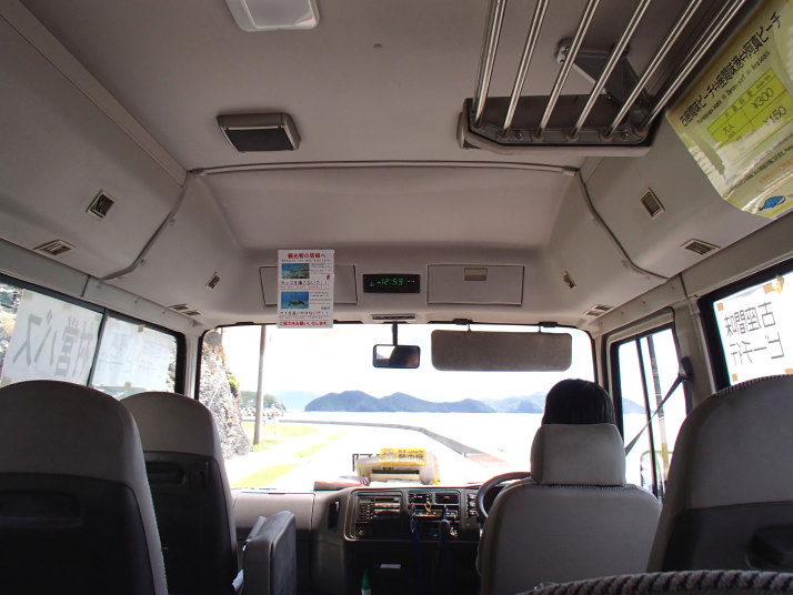 部屋で着替えを済ませたら、すぐに港へ向かい送迎バスに乗り込んだんですが、このバスは、まず「阿真ビーチ」へ行ってからまた港へ戻り、そこから「古座間味ビーチ」へ向かうルートでした。
