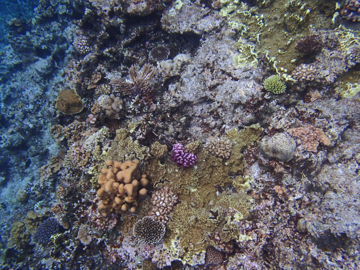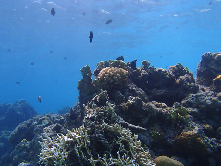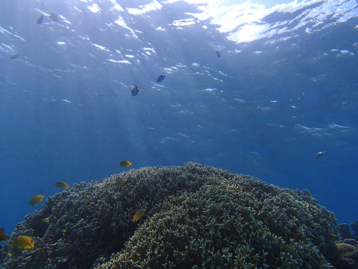 ダイビング船が居る辺りまで行くと珊瑚や魚が群れてました。