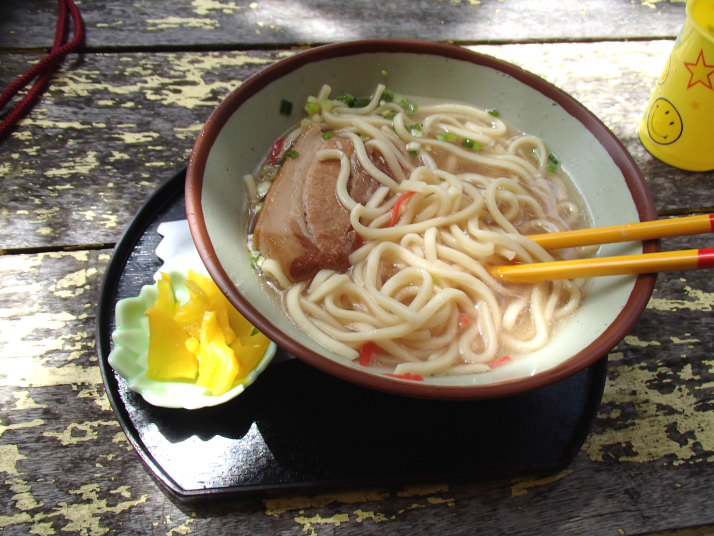 沖縄そばが温かくて、泳いだ後の冷えた体にぴったりでした。