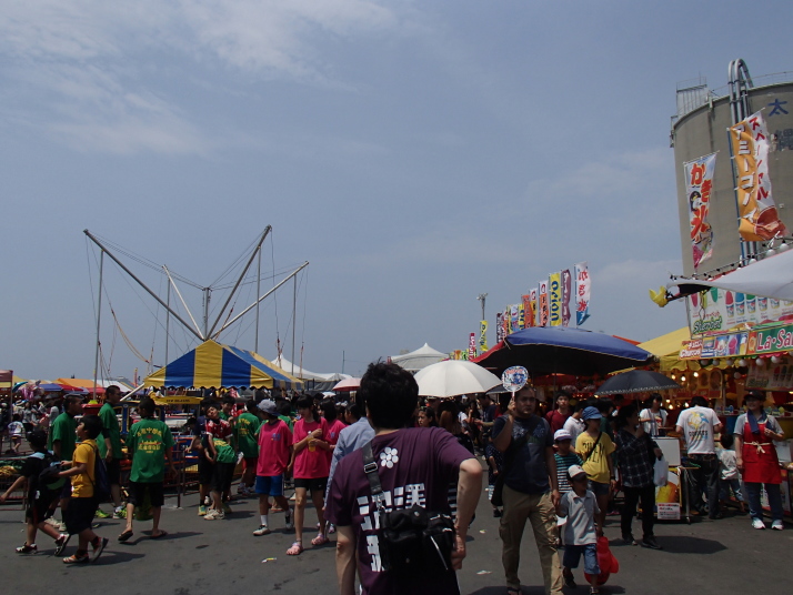 ハーリーをしばらく観戦し会場内をウロウロしてたんですが、結構歩いたので皆 足が限界に達し、取り合えずビールを買って公園の手すりに腰かけ、つかの間の休憩をとりました。