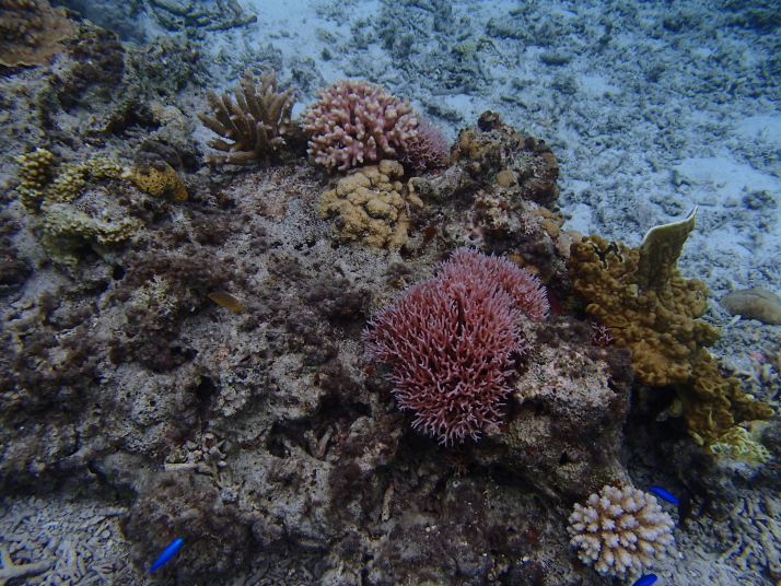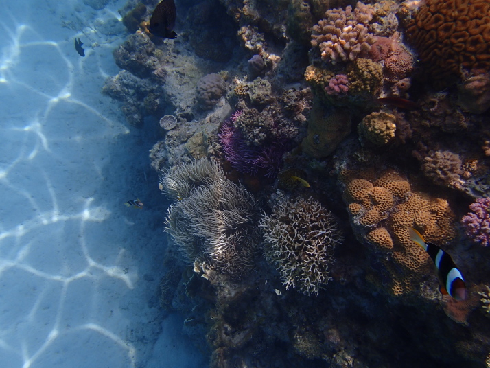 この日も大潮で水深が浅かったので、生憎の曇り空にしては珊瑚が良く見え、普段より良い感じでした。