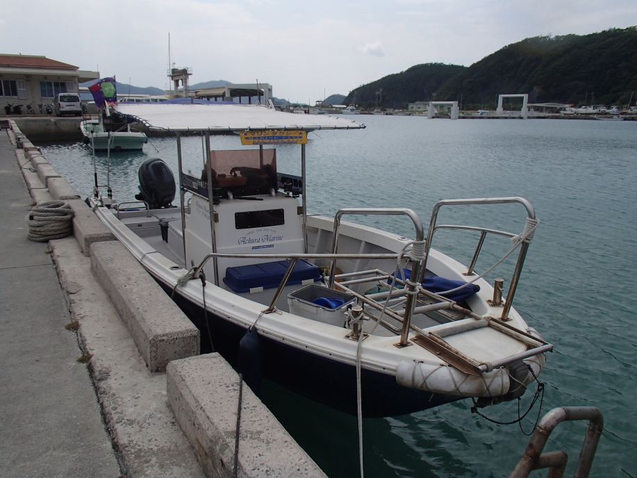 今日は、午後4時頃に迎えの船を頼んでたんですが、他のお客さんがボートシュノーケルをやるので、宮平さんの計らいで、一緒に連れてってもらいました。