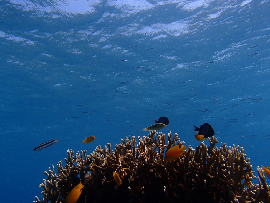 ここは座間味では珍しく枝珊瑚がたくさん見れる場所で、いつも見ている珊瑚より、すごく新鮮に見れて楽しかったです。