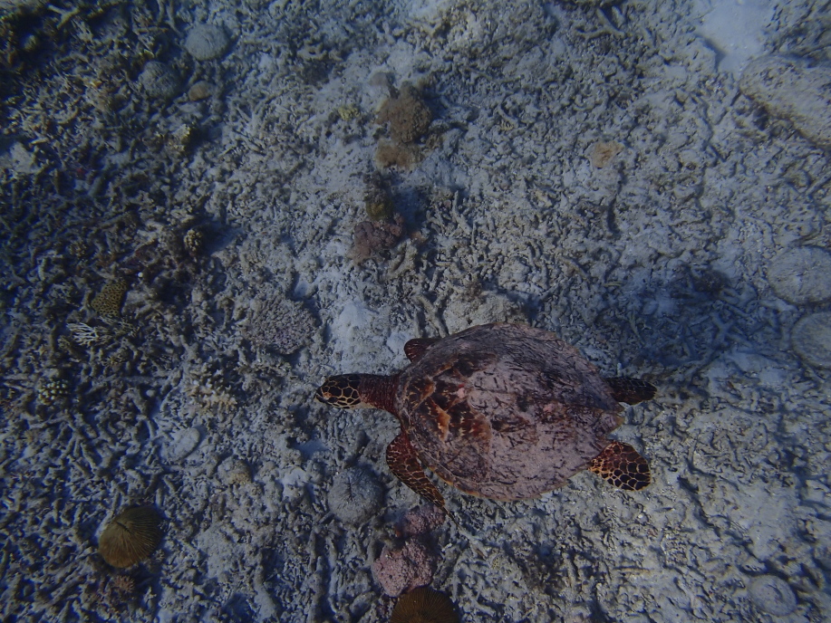 早々に他のお客さんが見つけたらしく、私達も行って見ると、ウミガメが珊瑚をガシガシとかじってました。