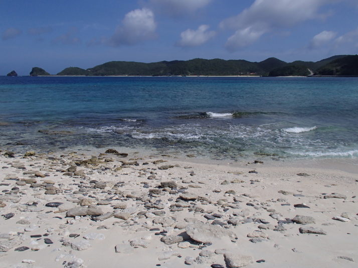 島の真ん中を登って進むと、以前シーカヤックツアーで連れてってもらった「小安慶名敷」が見えました。