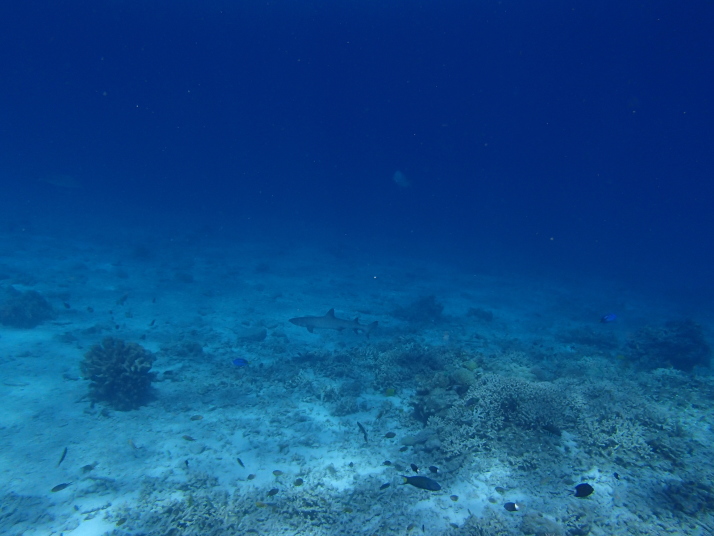 何本目かに海に入った時、目の前を1m位の大きさのサメが横切って行きました。