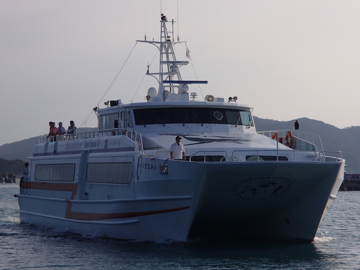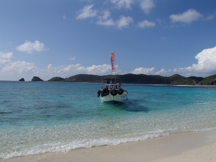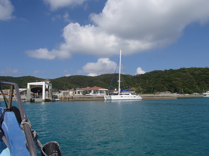 翌朝、今日は無人島に行く予定にしてたので、港へ行っていつも頼んでいる渡し船の「宮平」さんに電話して見ると、「今日は会議で、仕事を休んでいるので申し訳無いけど、お隣の船で行って下さい」と言われました。