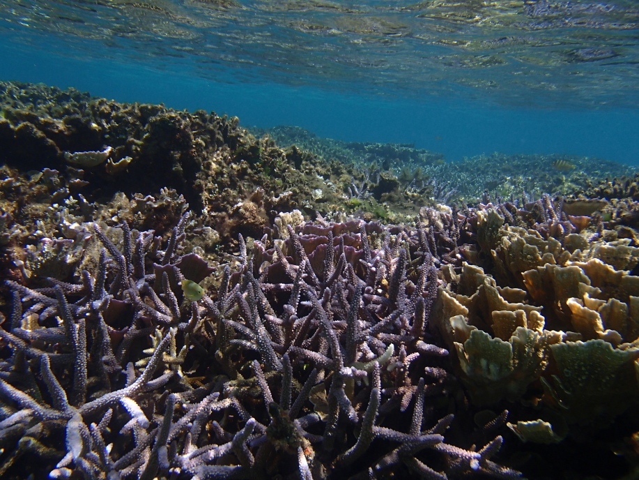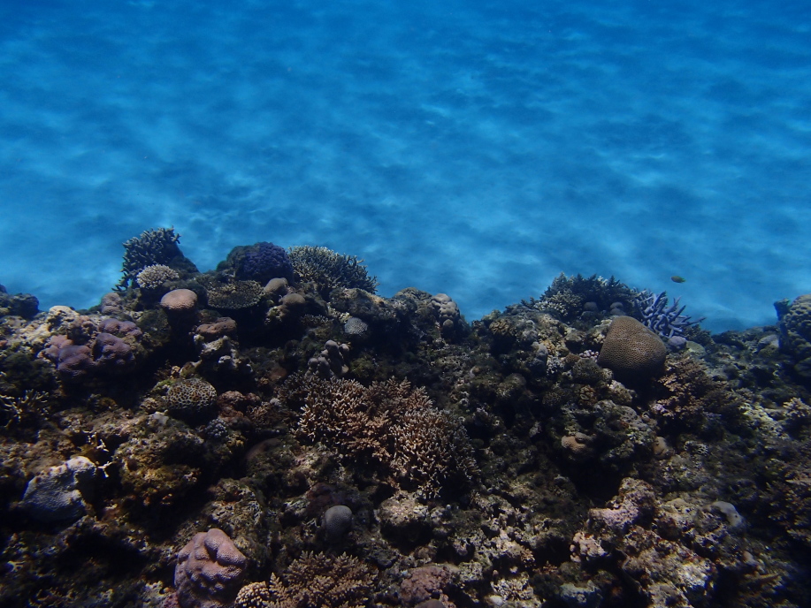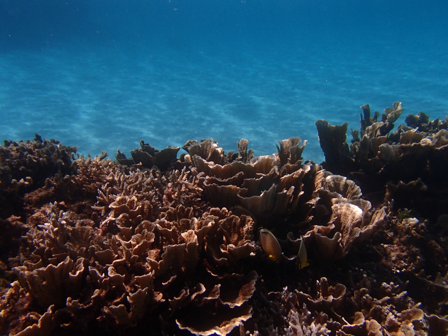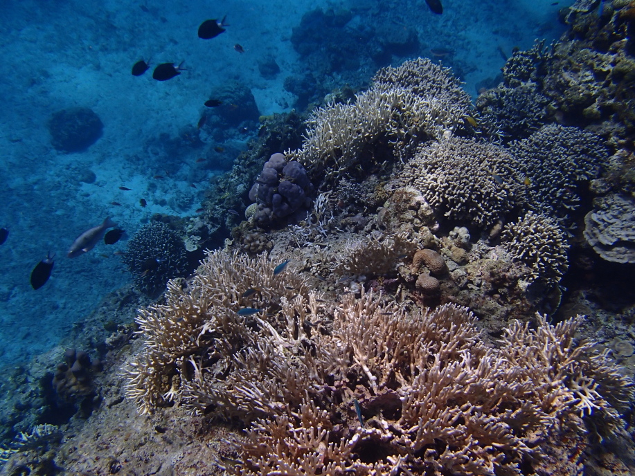 浜辺近くは緑色に水がどんよりとして少し気持ち悪かったんですが、しばらく沖へ泳ぐと枝珊瑚の群生が広がっていて凄く綺麗でした。