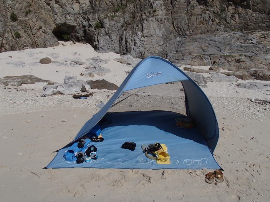いつものテントを立ててすぐに海に飛び込みました。
