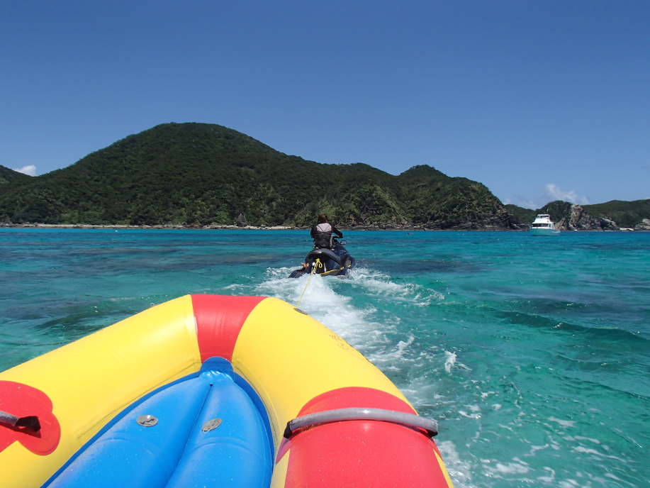 ここのバナナボート送迎は、アトラクションにも乗れた気がして何となくお得な気になります。