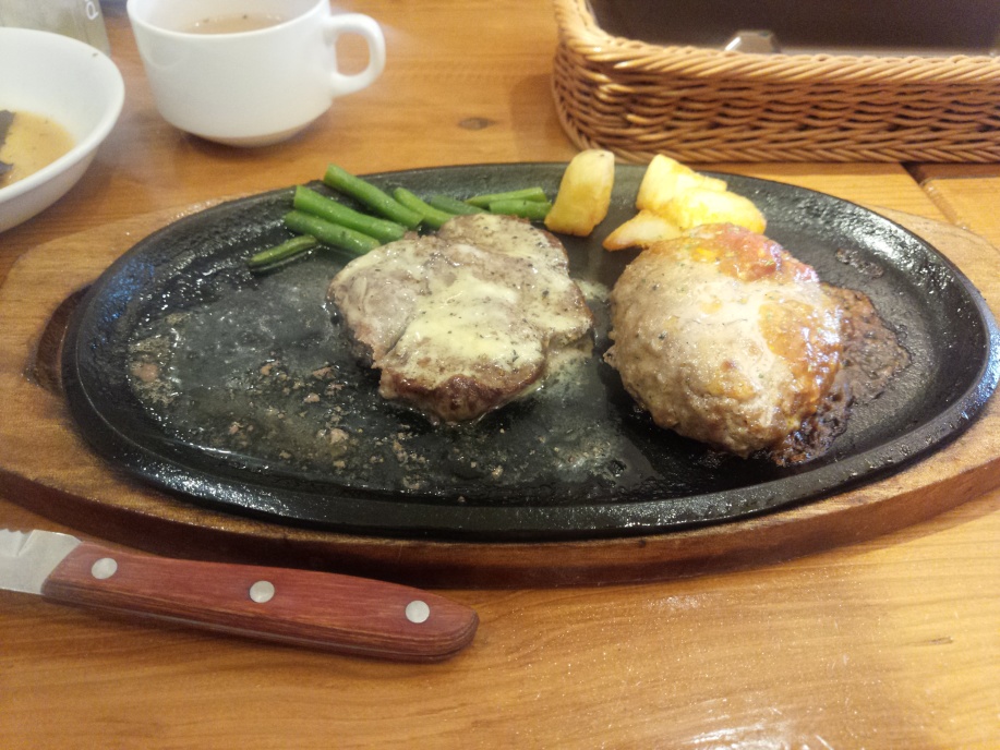 さすがゴールデンウィーク!何処もお店は一杯だったんですが、I ポンが「ここのCM見た事が有る!」の一言で「ステーキHAN’S」に入る事にしました。