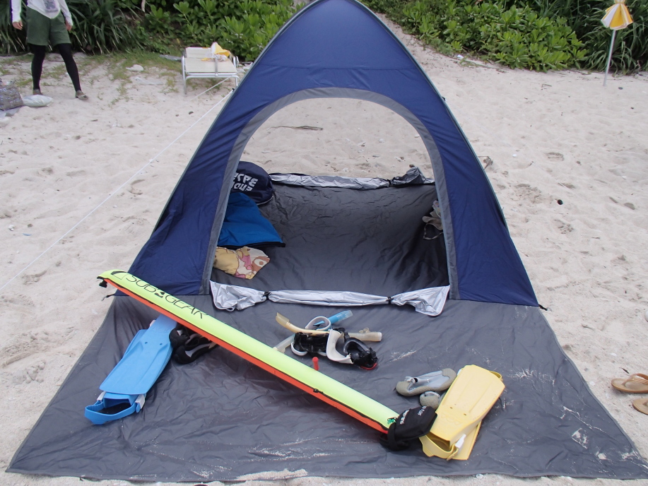 いつもながら、テントの設置が終わる頃には汗だくになるので、早々に海に飛び込みました。