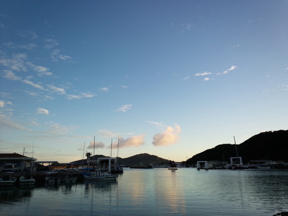 昨日、無人島から港へ送ってもらう時に、宮平さんに「明日も朝9時半頃お願いします。」と言ってたんですが、朝早目に宿を出たので、港へ向かう途中で船が出航するのが見えました。