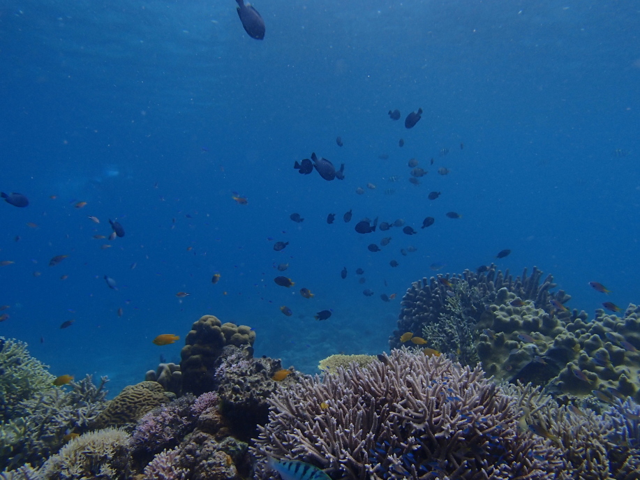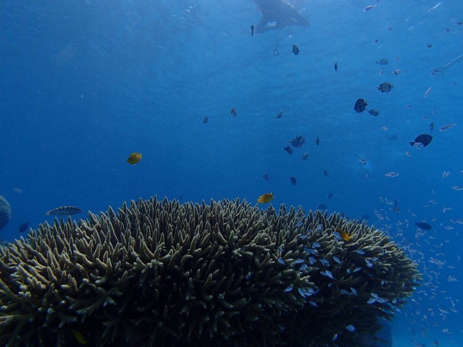 珊瑚は綺麗なんですけど、さっきのが気になって、キョロキョロとしていました。